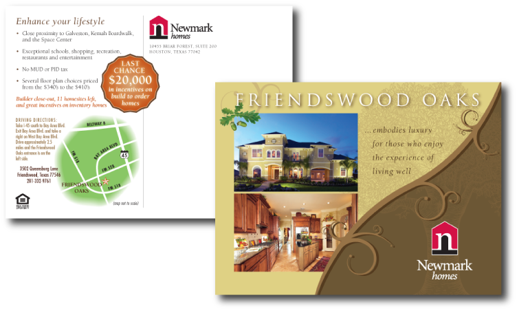 Direct Mail Postcard: Newmark Homes Friendswood Oaks